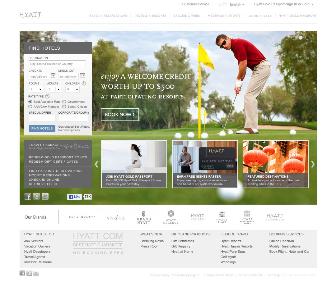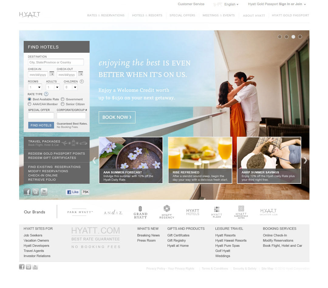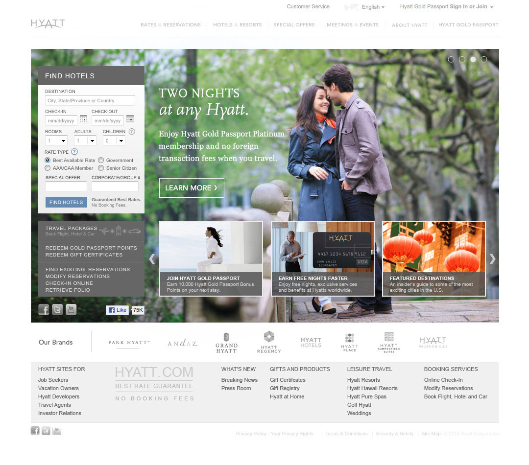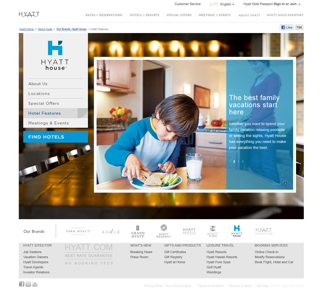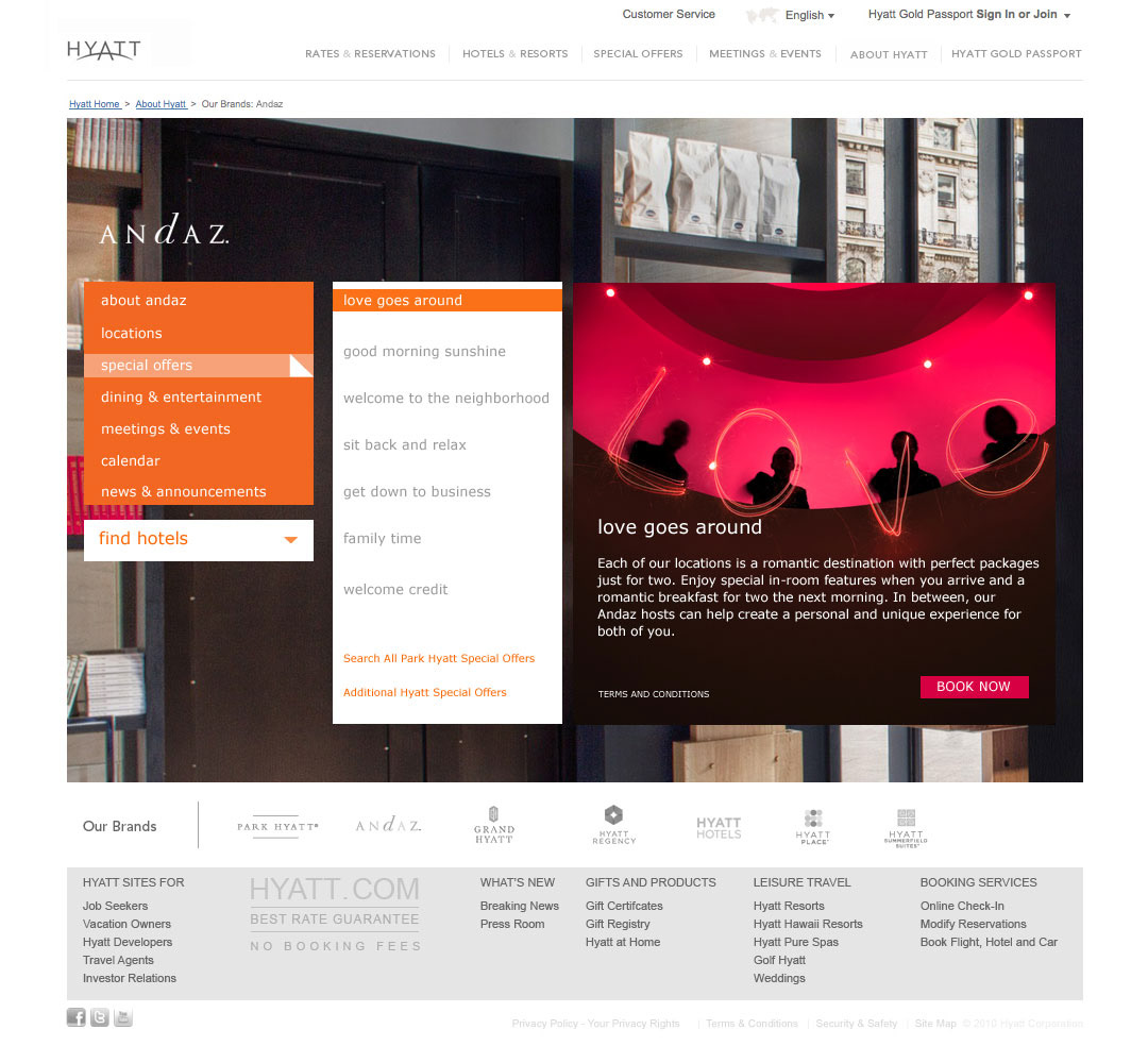 Corporate website and brand microsite redesign for all seven Hyatt hotel brands.