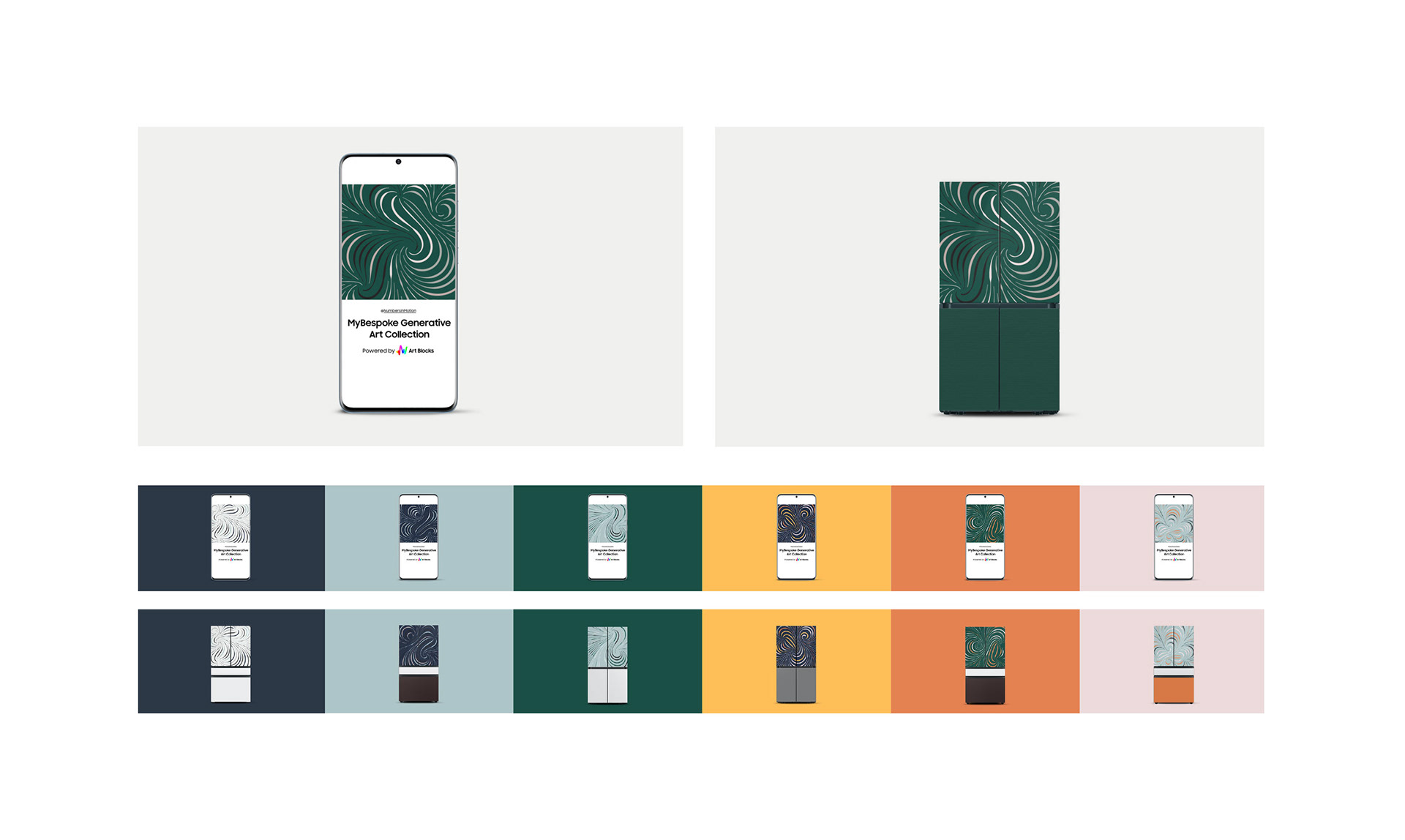 Created by artist Matt Jacobson (aka NumbersInMotion) and powered by Art Blocks technology, the limited-edition Samsung MyBespoke Generative Art Collection artfully uses computer algorithms to generate stunning and unique artworks on the Ethereum blockchain while utilizing the Samsung Bespoke color palette.